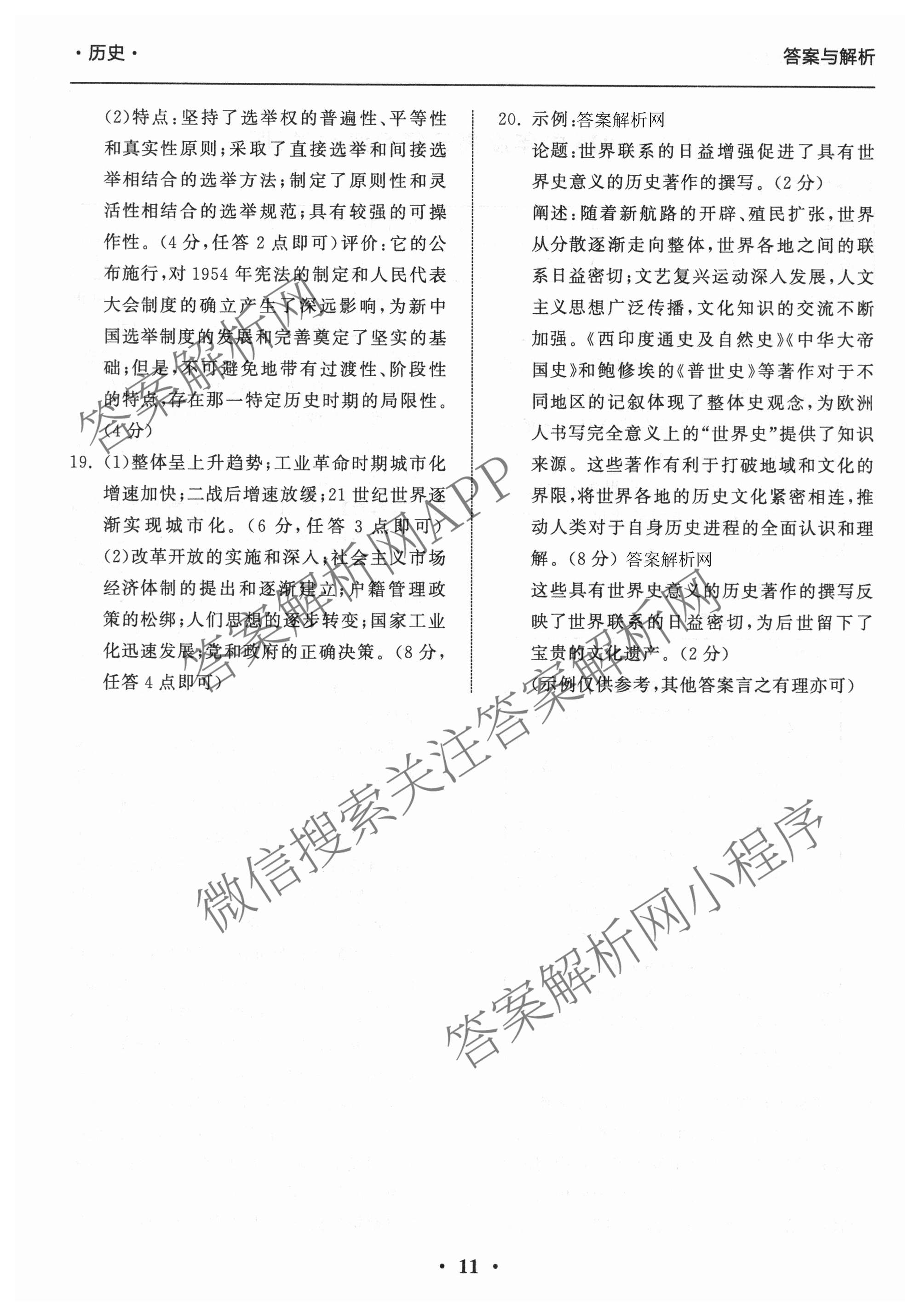 - 2025-2026[衡中同卷]学年度[高三]复习滚动卷(三)3历史(GY)答案