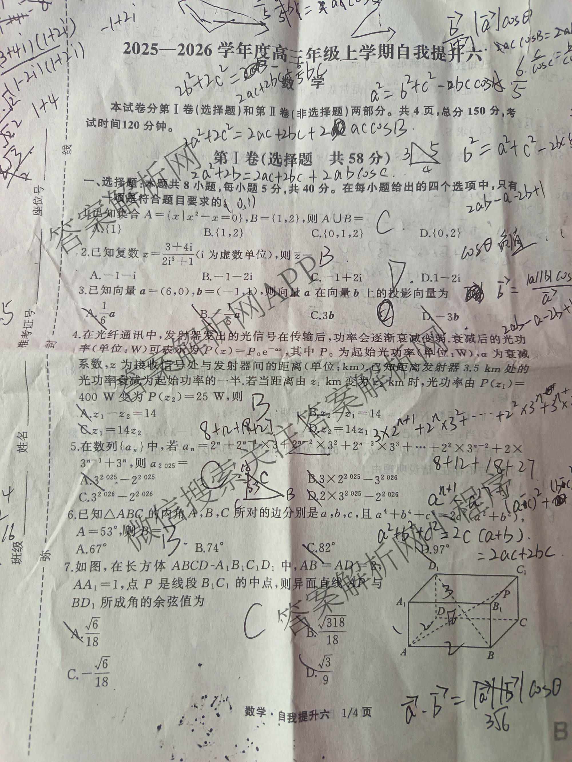 2025-2026学年度高三年级上学期自我提升六数学(B)试题,目前分科卷答案网已经汇总了2025-2026学年度高三年级上学期自我提升六数学(B)试题的各科答案和试卷,获取更多衡中同卷答案解析,请在关注本站。