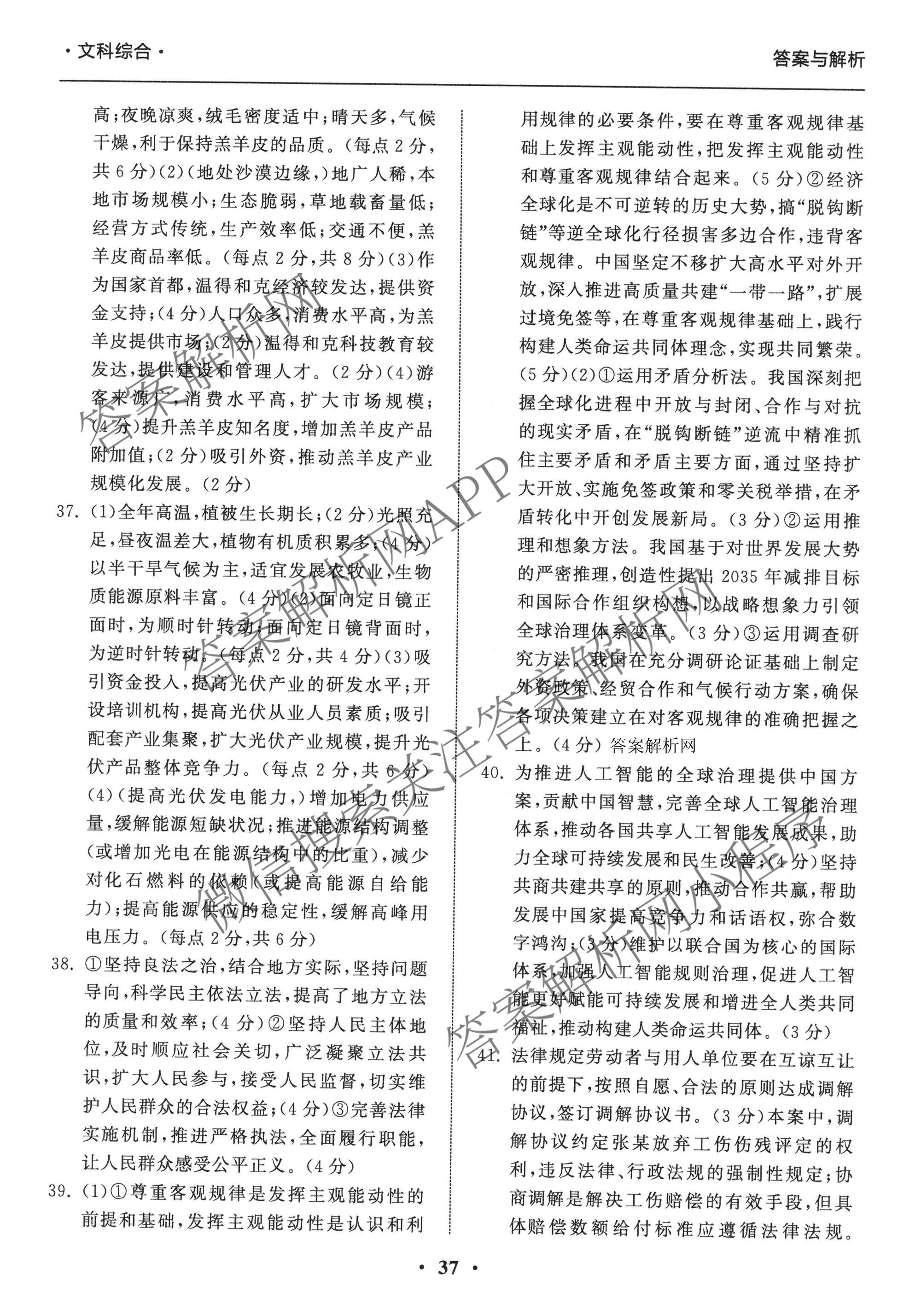 - 高三天舟高考(衡中同卷)2026年普通高等学校招生全国统一考试模拟调研卷(五)5文综答案