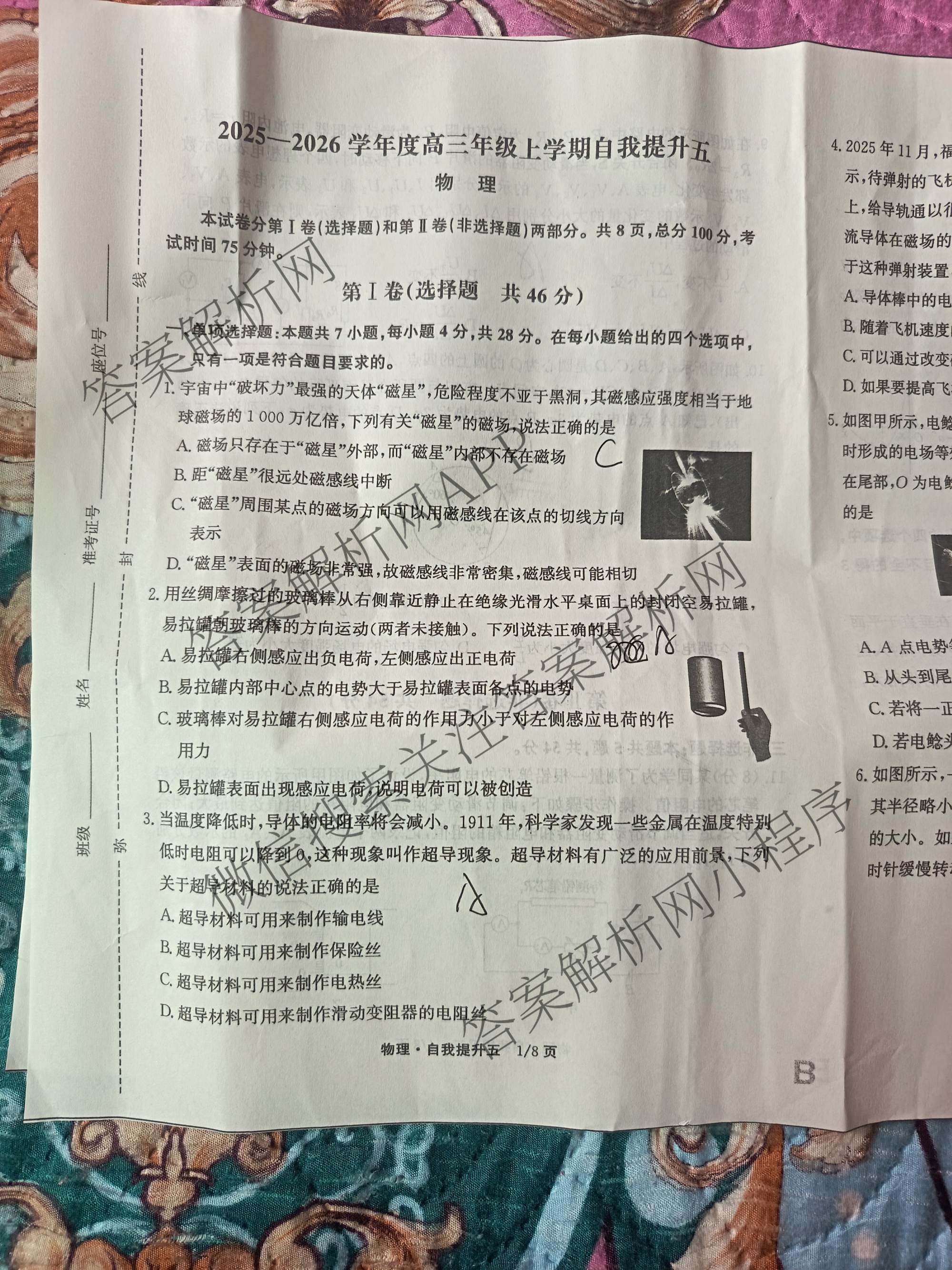 2025-2026学年度高三年级上学期自我提升五物理(B)试题,目前分科卷答案网已经汇总了2025-2026学年度高三年级上学期自我提升五物理(B)试题的各科答案和试卷,获取更多衡中同卷答案解析,请在关注本站。