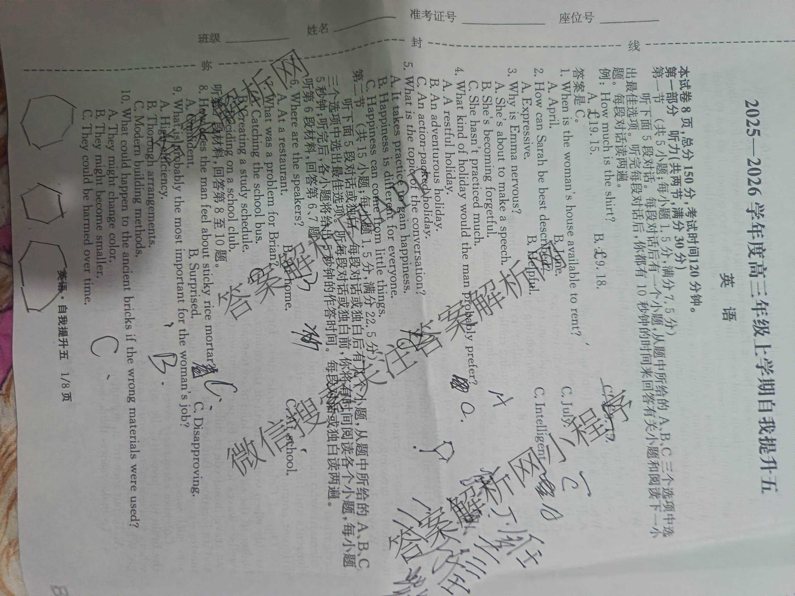 江西省2025-2026学年度高三年级上学期自我提升五英语试题,目前分科卷答案网已经汇总了江西省2025-2026学年度高三年级上学期自我提升五英语试题的各科答案和试卷,获取更多衡中同卷答案解析,请在关注本站。