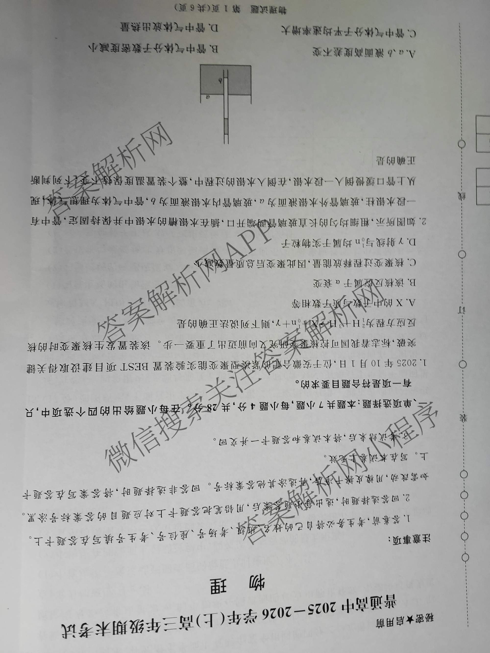 河南省普通高中2025-2026学年(上)高三年级期末考试物理试题,目前分科卷答案网已经汇总了河南省普通高中2025-2026学年(上)高三年级期末考试物理试题的各科答案和试卷,获取更多地方模拟答案解析,请在关注本站。