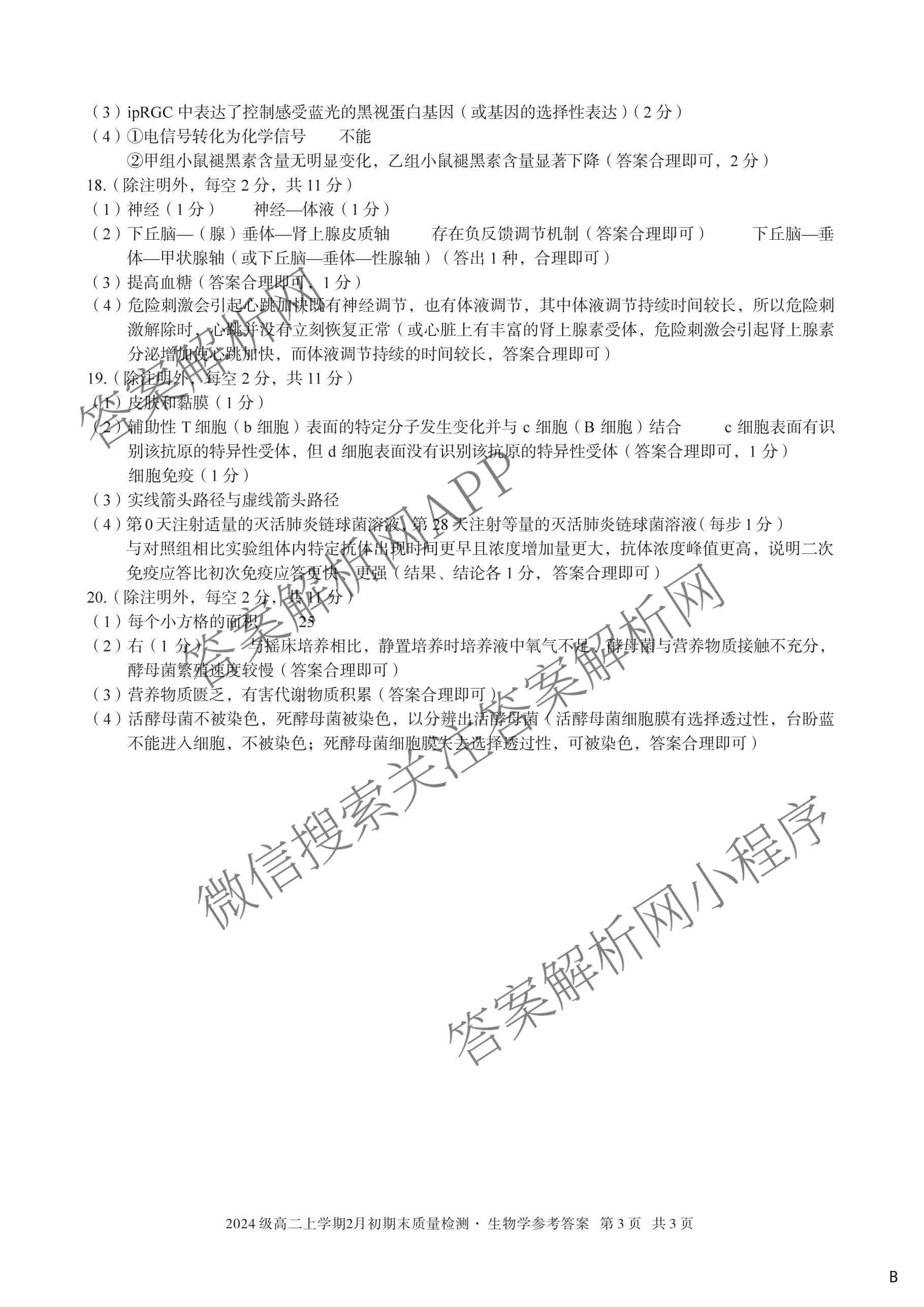 - (高二)安徽省2024级上学期2月初期末质量检测生物(B)答案