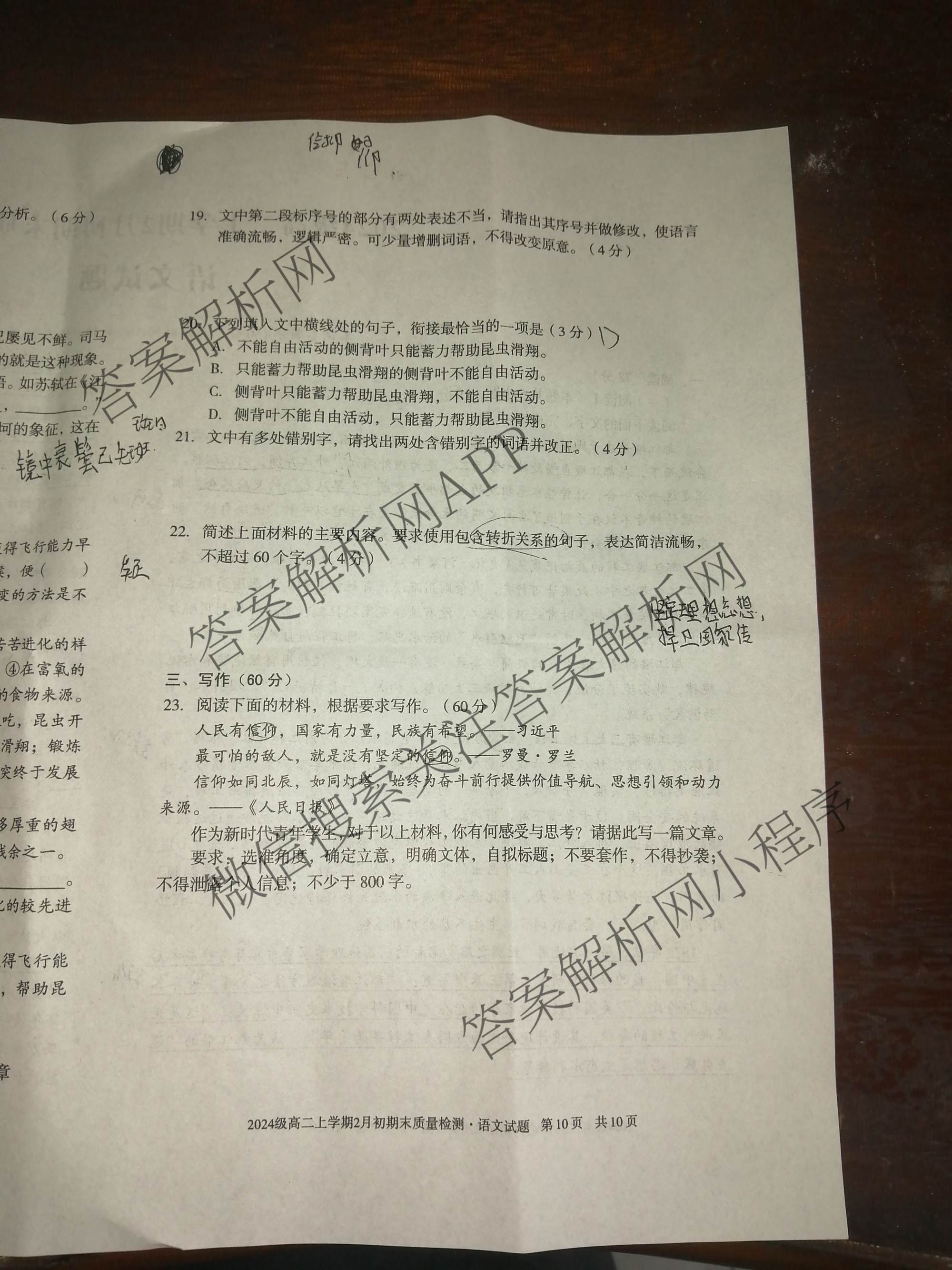 安徽省2024级高二上学期2月初期末质量检测语文试题,目前分科卷答案网已经汇总了安徽省2024级高二上学期2月初期末质量检测语文试题的各科答案和试卷,获取更多地方模拟答案解析,请在关注本站。