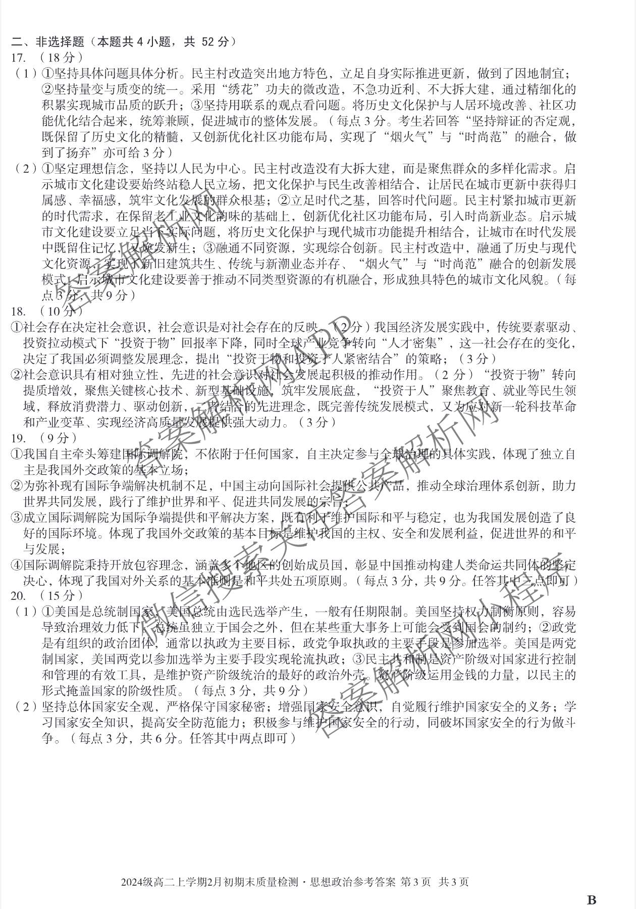 - [高二]安徽省2024级上学期2月初期末质量检测政治(B)答案