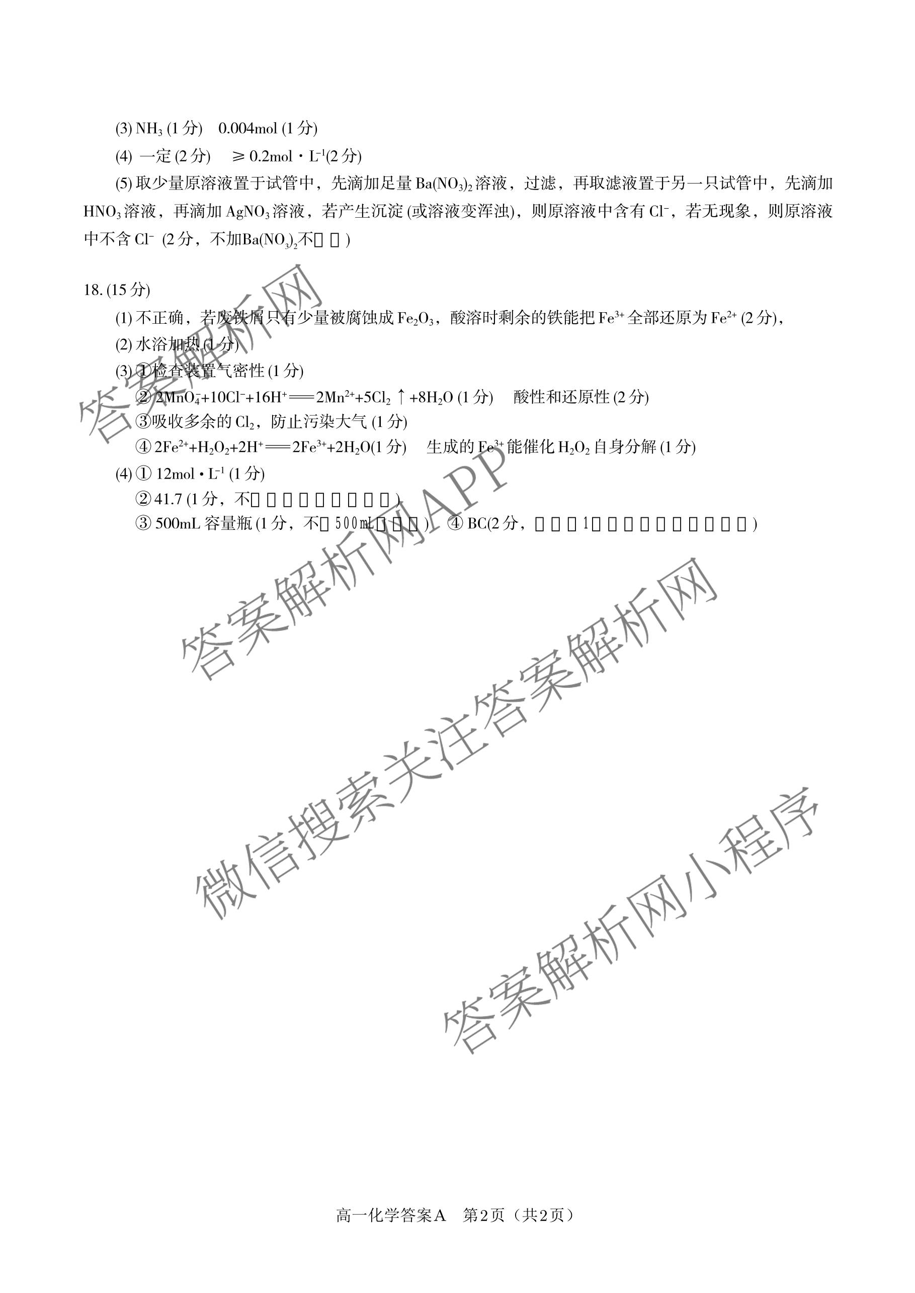 安徽省2025-2026高一2月考试(无标题)化学(A)答案,目前分科卷答案网已经汇总了安徽省2025-2026高一2月考试(无标题)化学(A)答案的各科答案和试卷,获取更多地方模拟答案解析,请在关注本站。