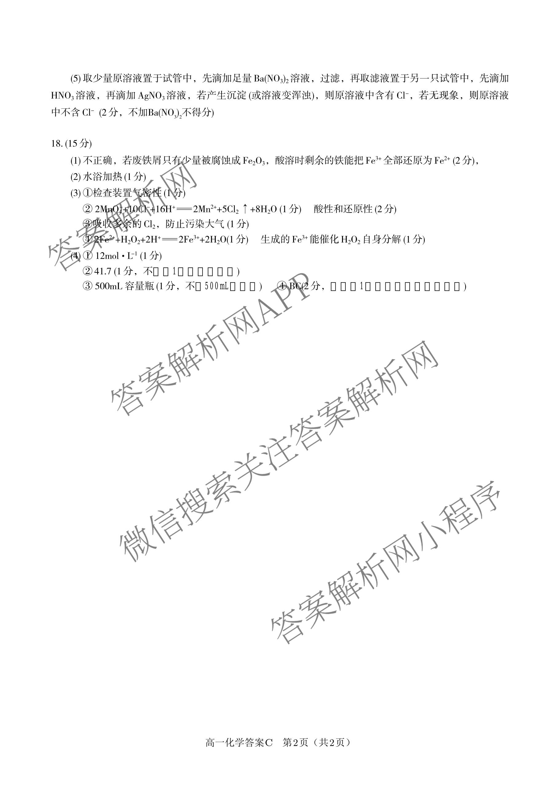 安徽省2025-2026高一2月考试(无标题)化学(C)答案,目前分科卷答案网已经汇总了安徽省2025-2026高一2月考试(无标题)化学(C)答案的各科答案和试卷,获取更多地方模拟答案解析,请在关注本站。