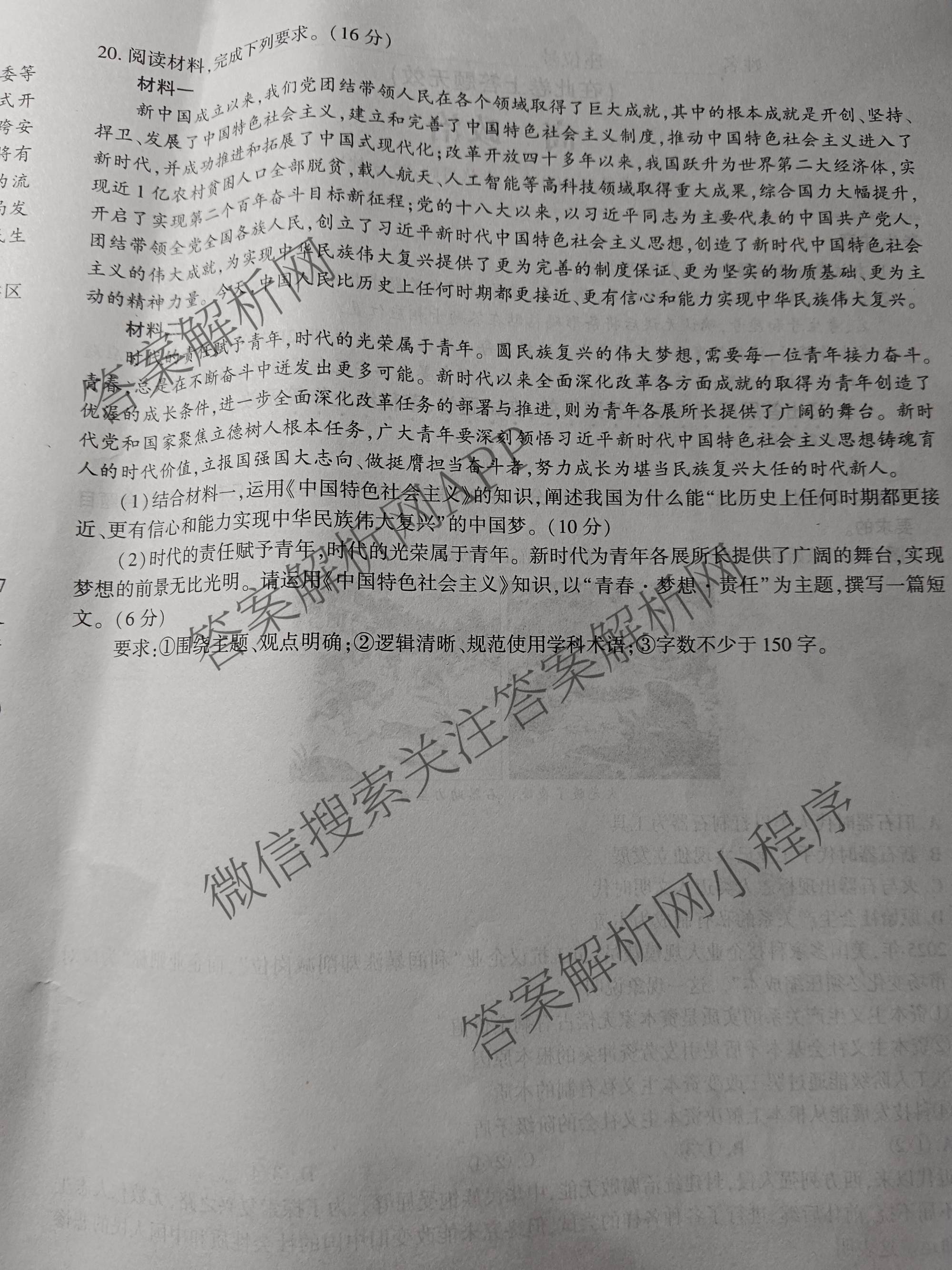 安徽省2025-2026高一2月考试(无标题)政治试题,目前分科卷答案网已经汇总了安徽省2025-2026高一2月考试(无标题)政治试题的各科答案和试卷,获取更多地方模拟答案解析,请在关注本站。