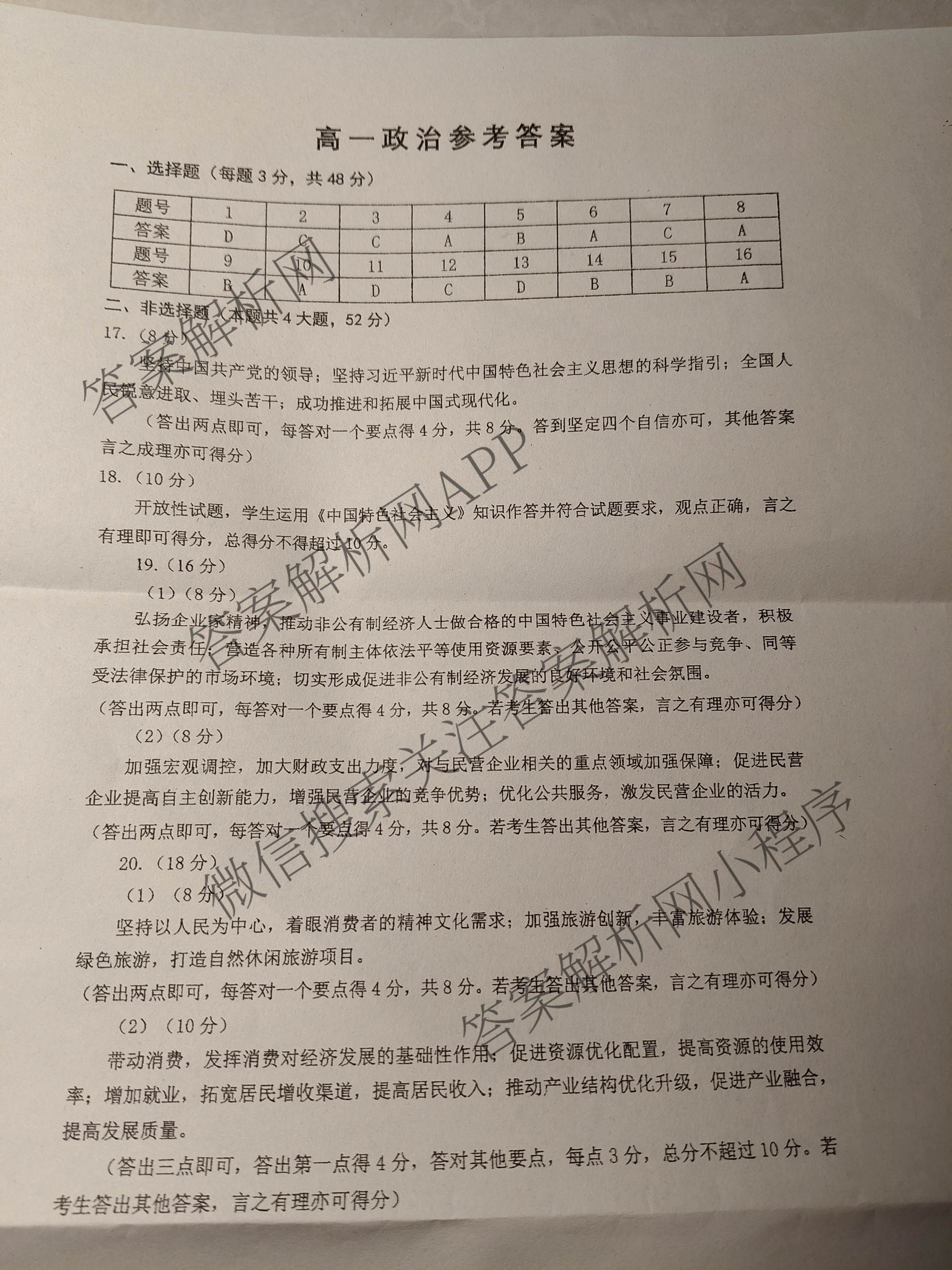- 2025-2026高一安徽省学年年级考试无标题(试卷科目黑体-2月)政治答案