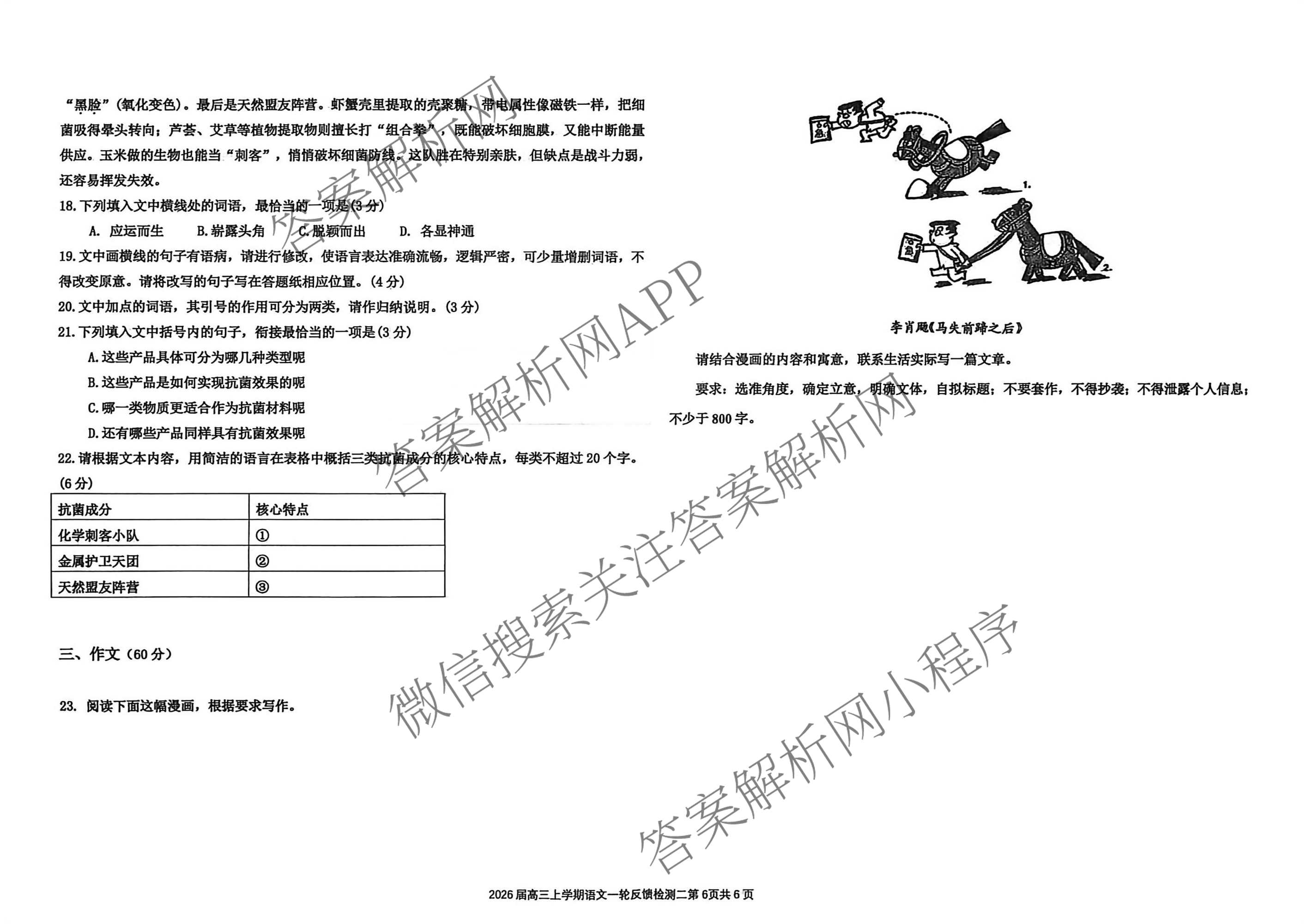 河北省衡水市冀州中学2025-2026学年上学期高三一轮反馈检测(二)语文试题,目前分科卷答案网已经汇总了河北省衡水市冀州中学2025-2026学年上学期高三一轮反馈检测(二)语文试题的各科答案和试卷,获取更多地方模拟答案解析,请在关注本站。