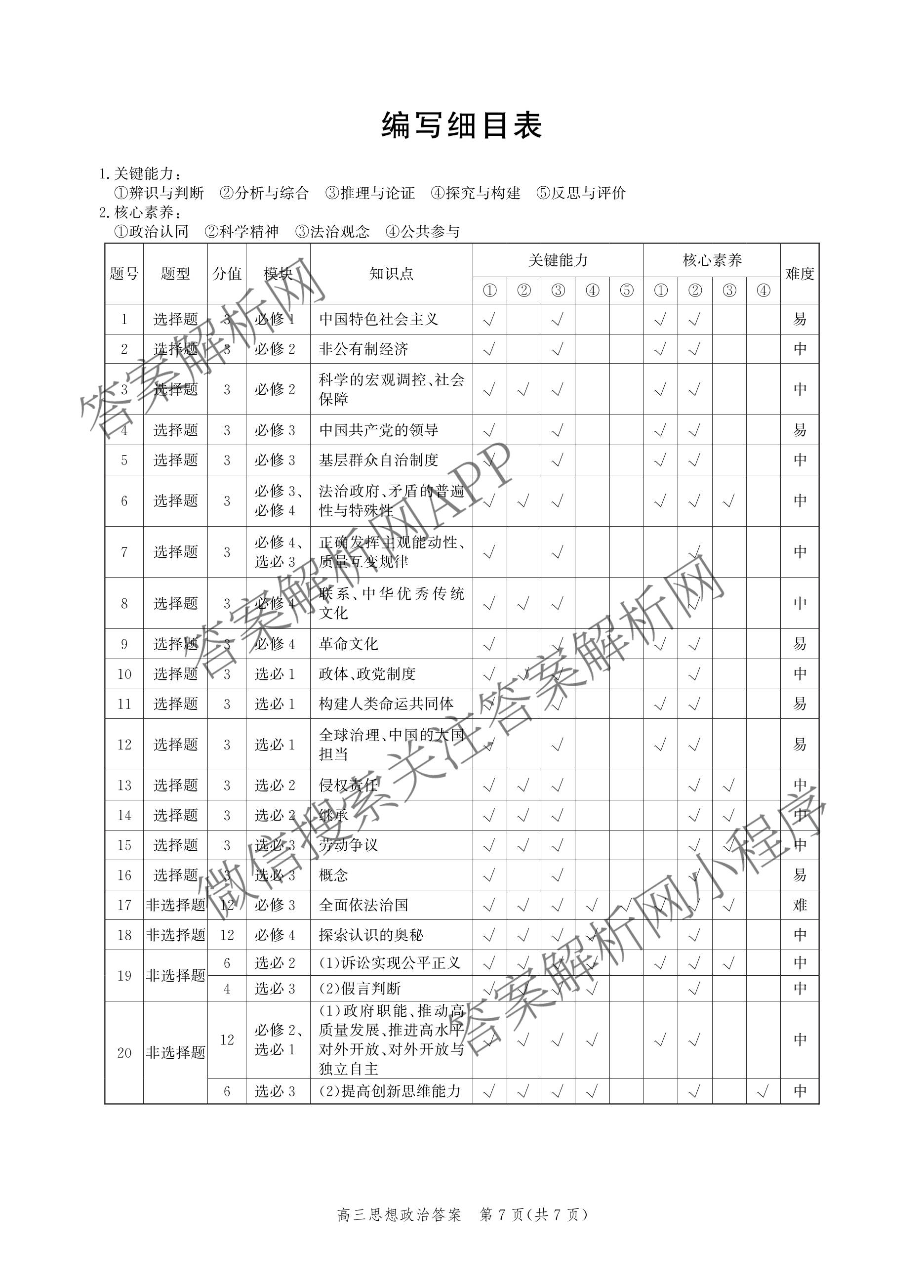 - [高三]河北省沧州市运东七县一中2026届一模(无标题)(2026.02.07)政治答案