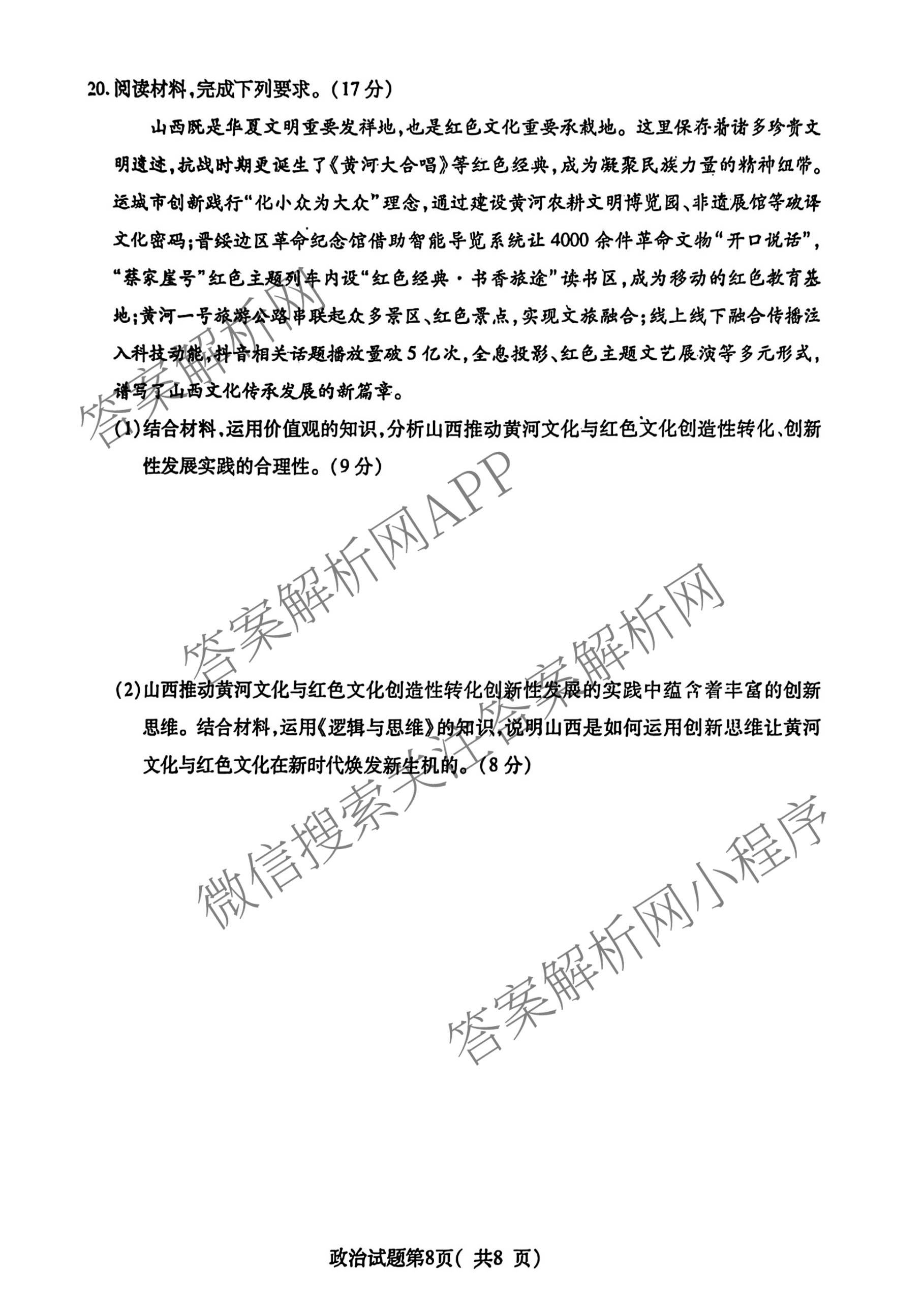 山西省临汾市高三年级2025-2026学年度第一学期期末考试(2月)政治试题,目前分科卷答案网已经汇总了山西省临汾市高三年级2025-2026学年度第一学期期末考试(2月)政治试题的各科答案和试卷,获取更多地方模拟答案解析,请在关注本站。