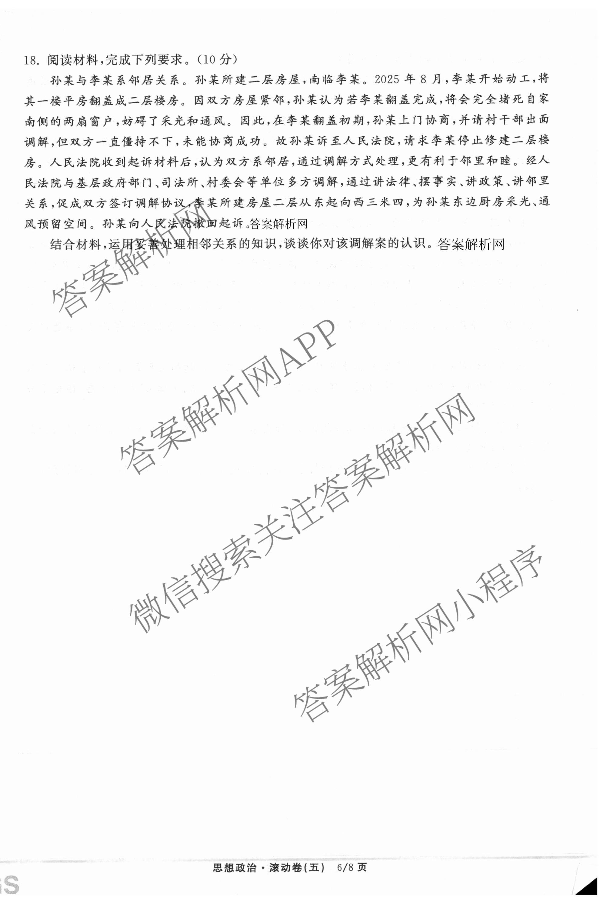 - 衡中同卷2025~2026学年度(高三)复习滚动卷(五)5政治(GS)试题