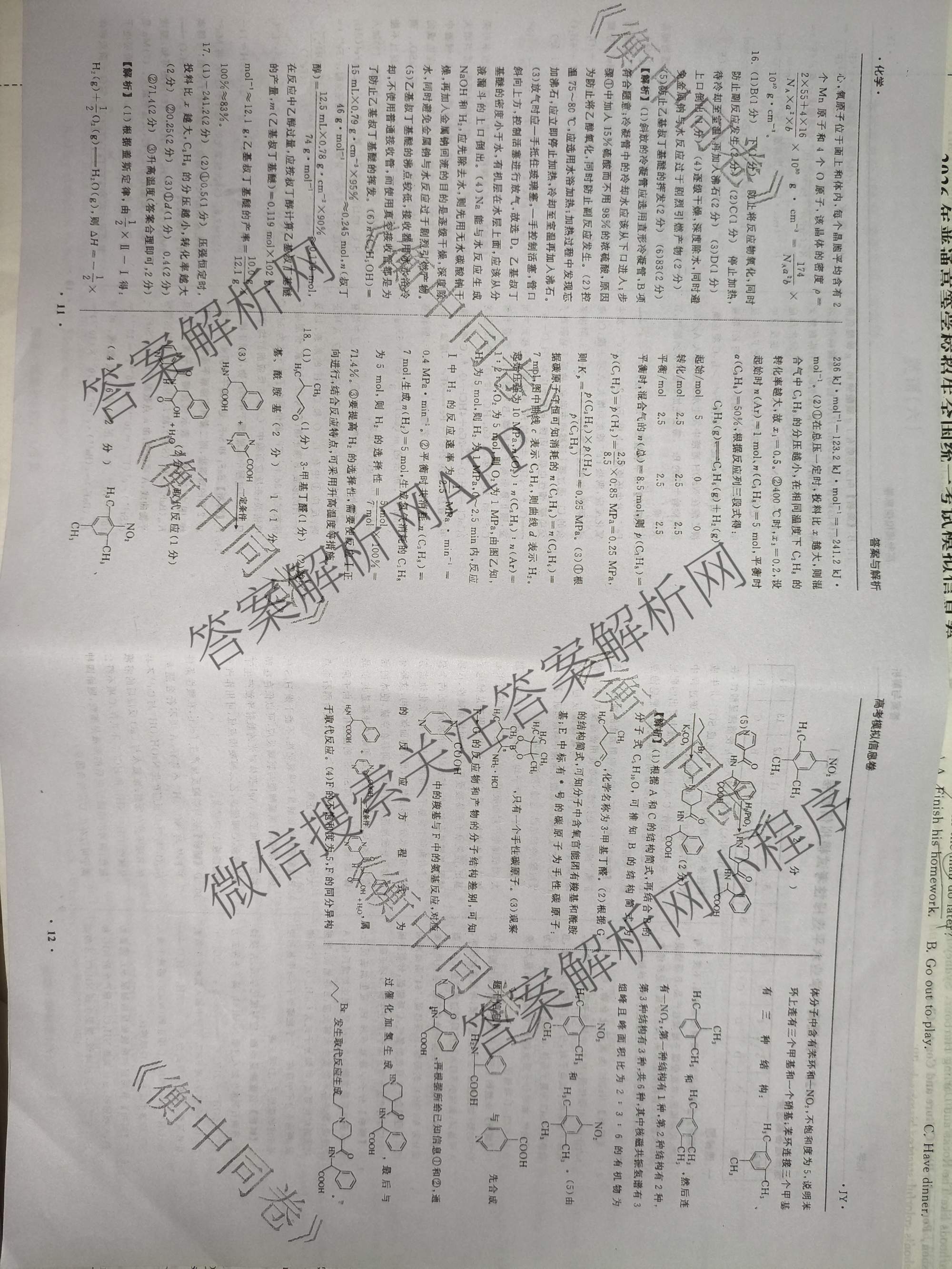 - [高三]天舟高考衡中同卷2026年普通高中学业水平选择性考试模拟信息卷(三)3化学(WY)答案