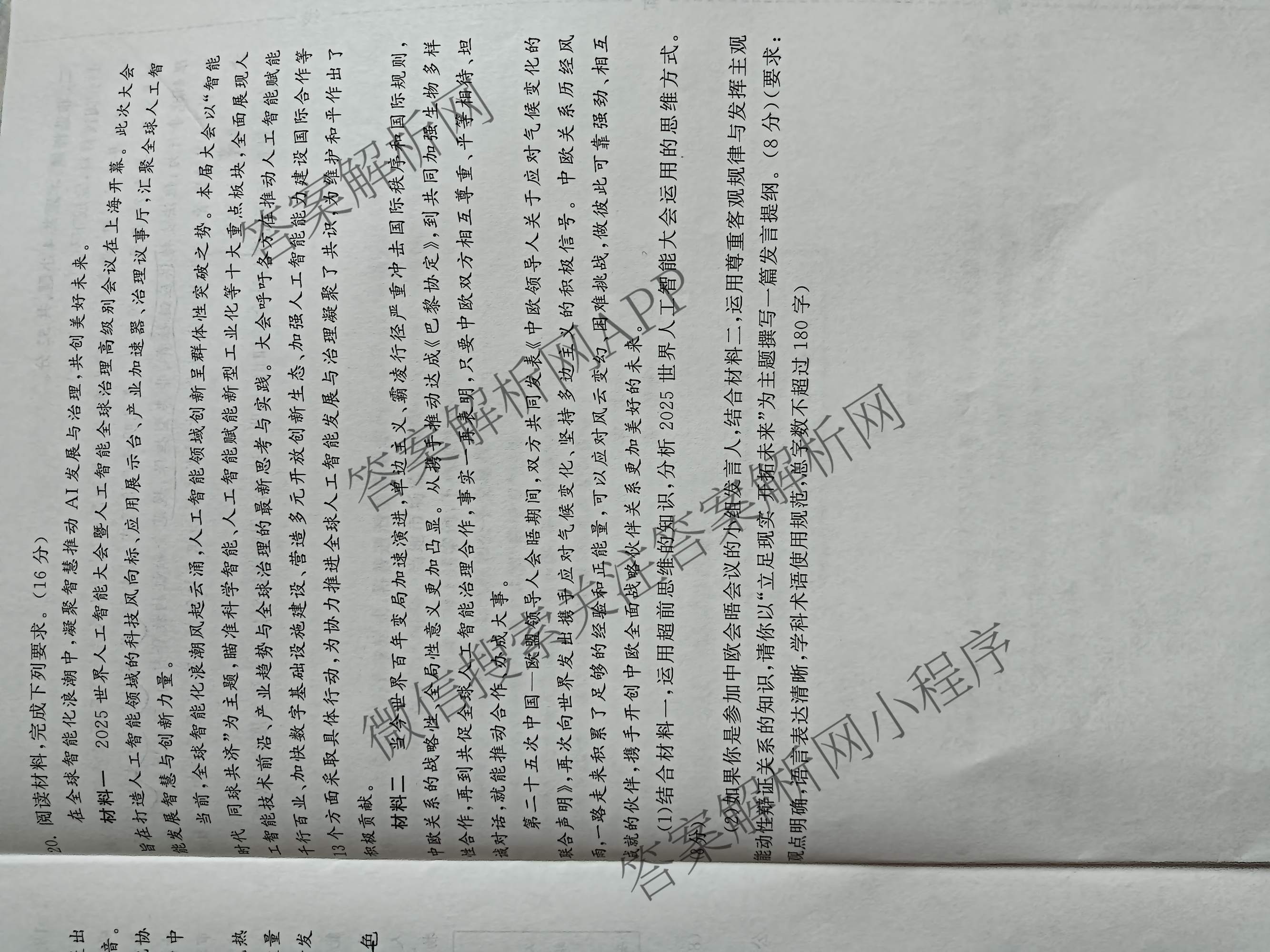 天舟高考衡中同卷·2026年普通高中学业水平选择性考试模拟信息卷(二)2政治(WY)试题,目前分科卷答案网已经汇总了天舟高考衡中同卷·2026年普通高中学业水平选择性考试模拟信息卷(二)2政治(WY)试题的各科答案和试卷,获取更多衡中同卷答案解析,请在关注本站。