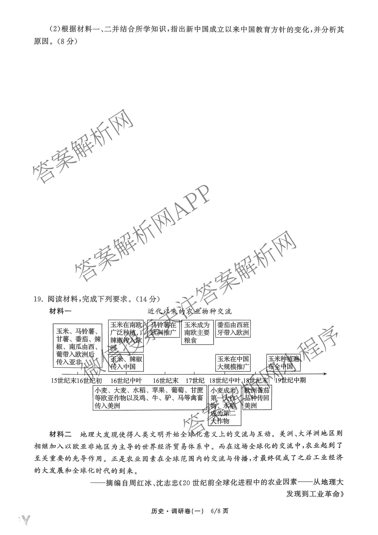 天舟高考衡中同卷·2026年普通高中学业水平选择性考试模拟调研卷(一)1历史(GY)试题,目前分科卷答案网已经汇总了天舟高考衡中同卷·2026年普通高中学业水平选择性考试模拟调研卷(一)1历史(GY)试题的各科答案和试卷,获取更多衡中同卷答案解析,请在关注本站。