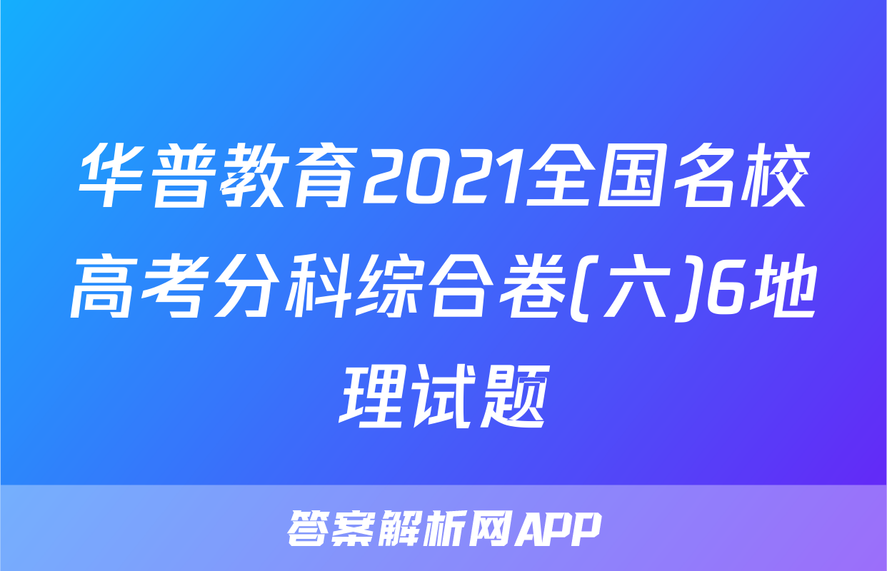 [高三][华普教育]·2022全国名校高考分科综合卷(六)6地理试题