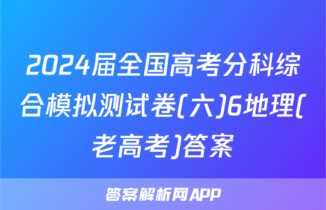 2024[全国高考分科综合卷](六)6地理(老高考)试题