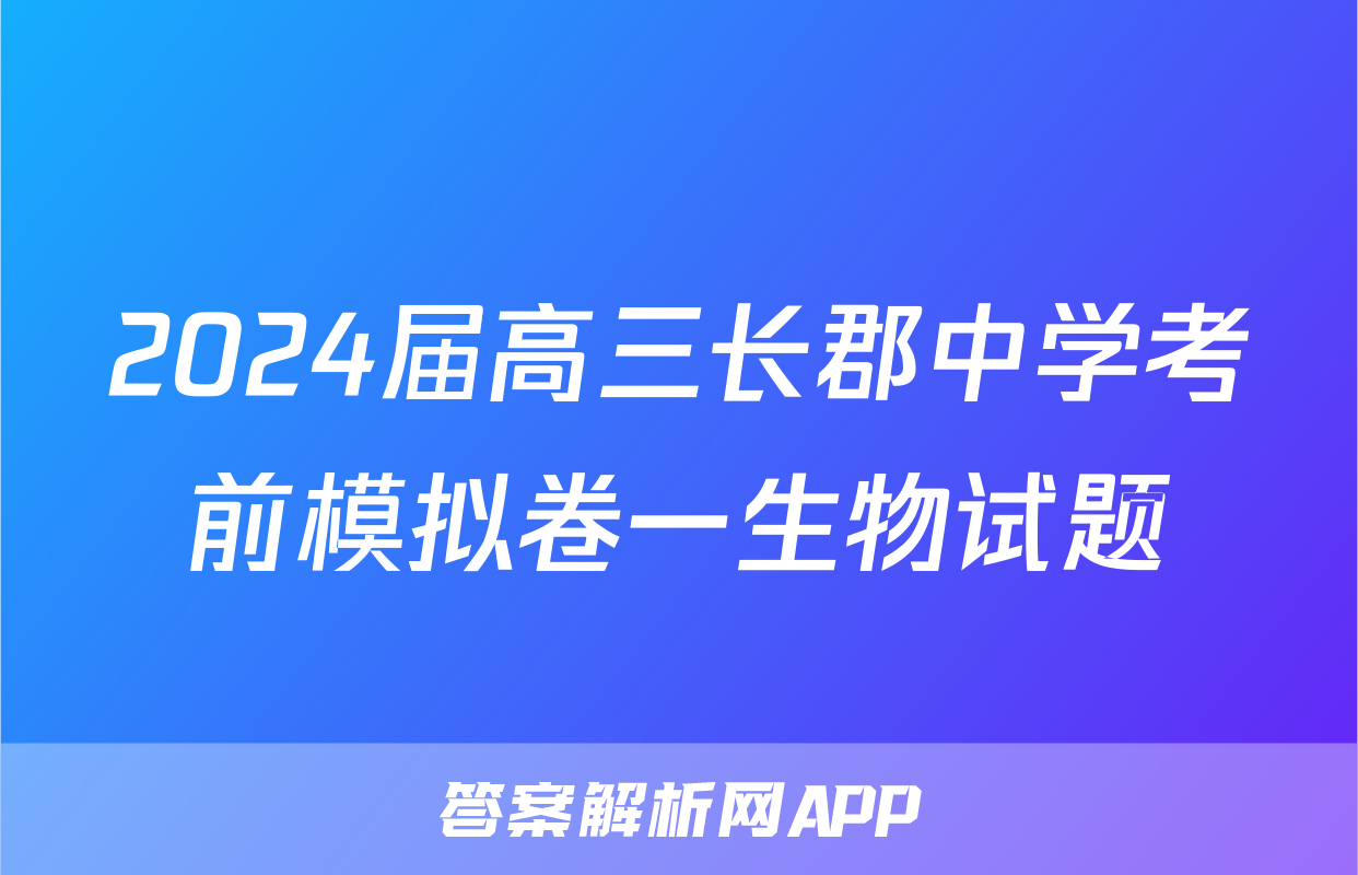 2024-06-05 22:40:47长郡中学2024届考前模拟卷一(9科全)生物试题已经更新完毕了, 小易老师汇总如下,供同学们参考学。甚至可以通过筛选胚胎等方法避免遗传病患儿出生,下列叙述正确... -