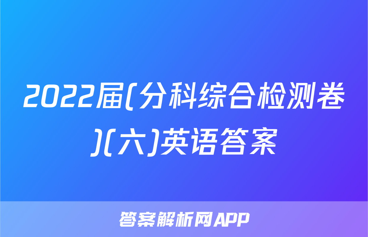 2021-11-13 18:35:262022届分科综合检测卷(六)试卷及答案汇总(10科全)英语的答案科目已经在陆续整理了,届时 武老师将为大家公布,希望对同学们有所帮助。